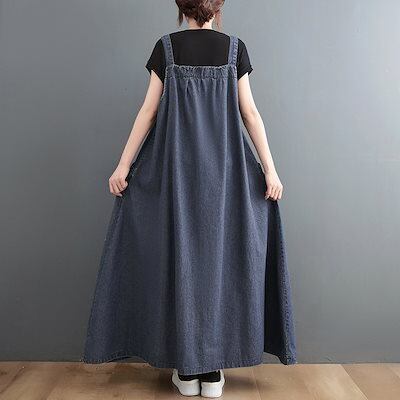 韓国ファッション デニム サロペットスカート 大きいサイズ 通勤 デニムワンピースゆったりおしゃれ