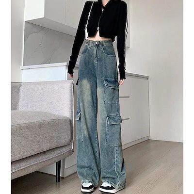 デニムパンツ ワークウェア ジーンズ レディース 新作 ゆったり ハイウエスト ストレート ワイドパンツ デニムパンツ