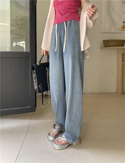 パンツ ひんやり 接触冷感 夏 レディース デニム ワイドパンツ 薄手 涼しい ボトムス ズボン 柔らか ストレートパンツ 大人 ゆったり ワイド 楽ちん リラックス シンプル カジュアル きれいめ