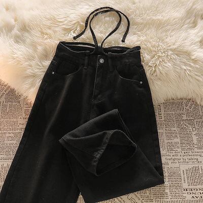 着痩せ デザイン感 ストレートパ ブラック レディース ンツ モップパンツ レトロ ジーンズ ハイウェスト