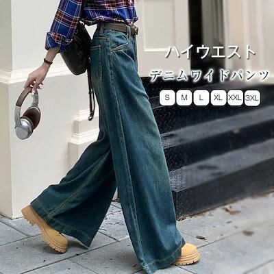 パンツ デニム レディース ロング丈 ワイド ルーズ ワイドパンツ ストレートパンツ ボトムス ハイウエスト デニムパンツ 秋 冬 レトロ 大きいサイズ 体型カバー 着痩せ ファッション きれいめ