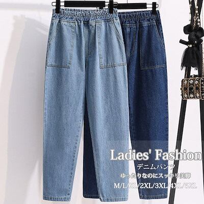 デニムパンツ パンツ レディース ボトムス 夏 大きいサイズ テーパードパンツ 細身 ストレートパンツ ウエストゴム パンツ デニム テーパード ロングパンツ 春夏 おしゃれ きれいめ 無地 ポケット