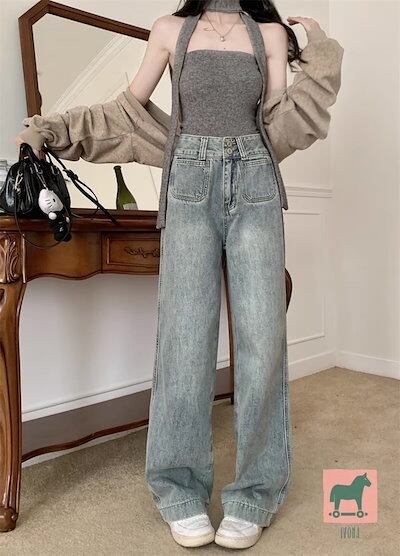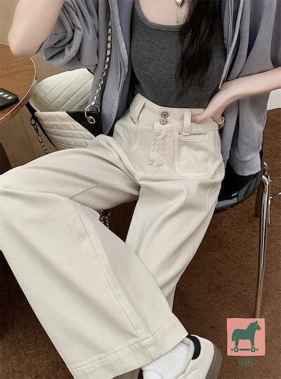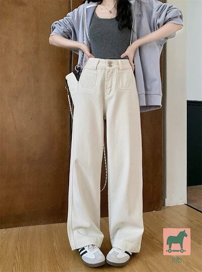 2024春夏パンツ デニム ジーンズ ワイド ストレート ハイウエスト 脚長効果 美脚効果 細見え 秋冬 白 カジュアル 韓国ファッション レディース お出かけ