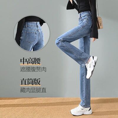 ストレートジーンズ女新高腰秋ゆるい痩せタバコ管ズボン2024年女性高ズボン女