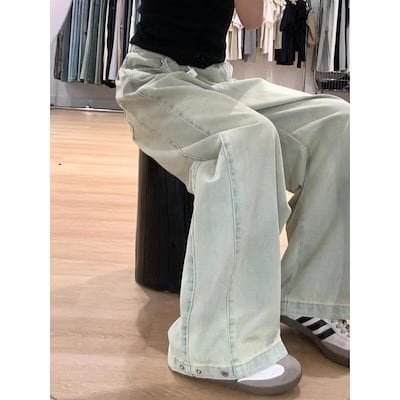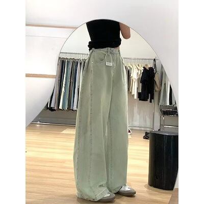 アメリカのレトロな明るい色のギャルジーンズ女性の背の高い腰のストレートパンツはゆるいズボンを引きずっている