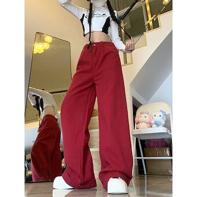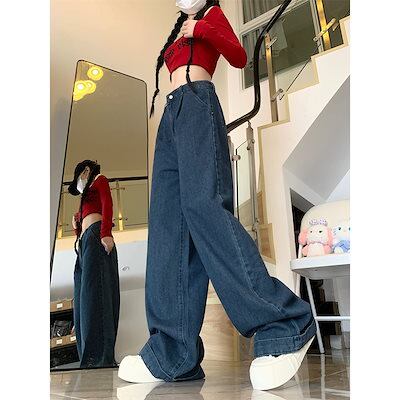 リアルショット! 巻き縁ジーンズ女レトロストレートパンツ春秋高腰女史百合カジュアル幅ズボン女
