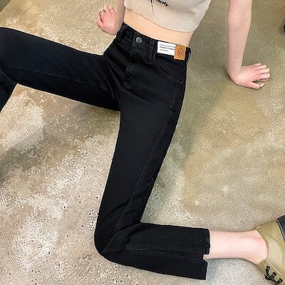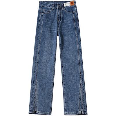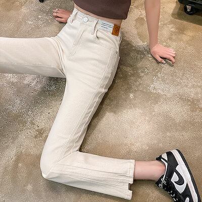 米白色開叉タバコ管ズボン女性シーズン2024八分九分高腰ゆるいストレートジーンズ