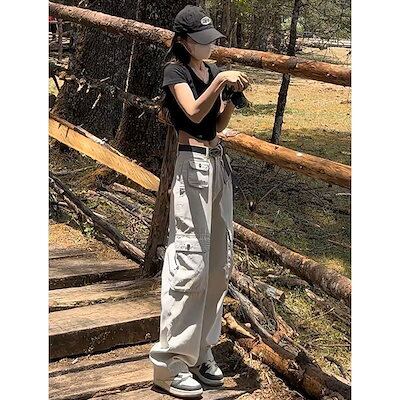 アメリカンレトロワークウェアジーンズレディース春秋ハイウエストルーズストレート夏アプリコットワイドパンツ