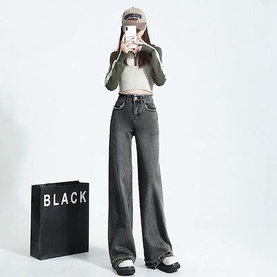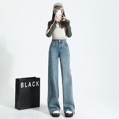 【3日以内出荷】脚長効果!デニムパンツ ハイウエスト ライトブルー ワイドパンツ レディース 春秋2025年新作 ゆったり 薄手 ストレート ドレープ ドラッグパンツ 韓国ファッション