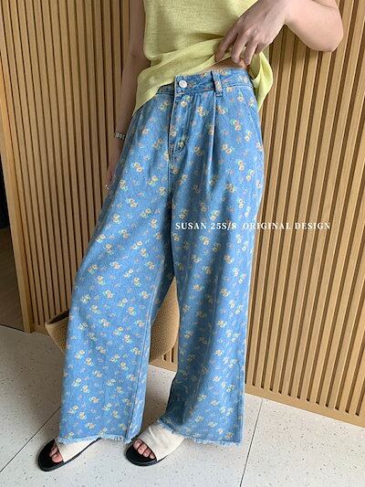 ワイドパンツ レディース デニムパンツ 花柄 ガウチョパンツ パンツ 春 秋 スカーチョ ガウチョ ワイドパンツ スカンツ ロング丈 パンツ 体型カバー 大きいサイズ ボトムズ 春 夏 着痩せ 美脚