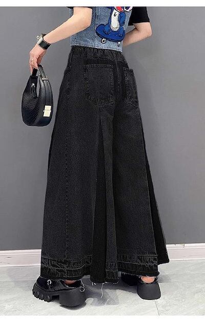 ワイドパンツ デニム レディース 切り替え フレアパンツ スカーチョ 春 秋 ロング丈 華奢見え 体型カバー おしゃれ ゆったり カジュアル ナチュラルカジュアル 着痩せ ボトムス 春物 春 秋 ゆる