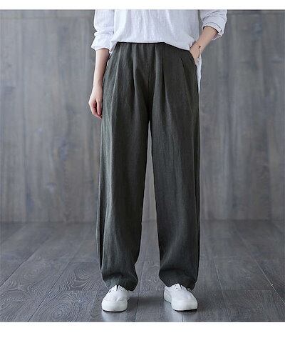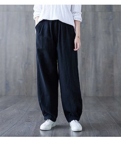サルエルパンツ レディースリネン ロング丈 春 秋 パンツ ボトムス バルーンパンツ 綿麻 体型カバー おしゃれ ゆったり カジュアル ナチュラル カジュアル 着痩せ ボトムス 無地 春物 春 夏 秋