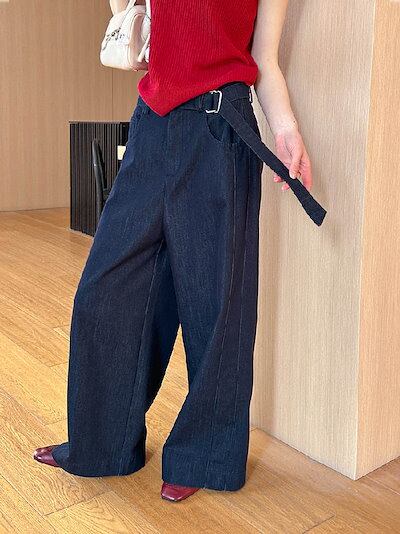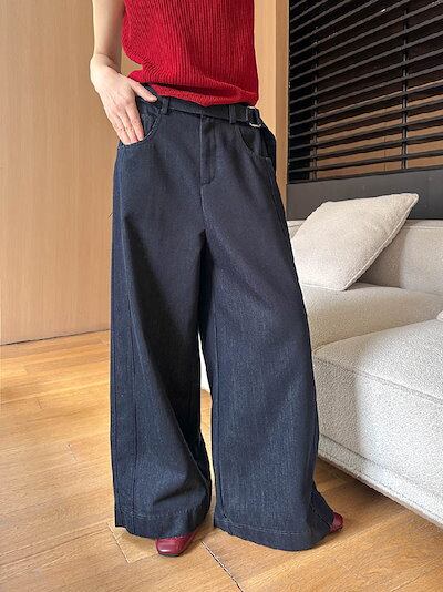 ワイドパンツ デニム レディース 春 秋 ロング丈 デニム パンツ 華奢見え 体型カバー おしゃれ 上品 ゆったり カジュアル ナチュラルカジュアル 着痩せ ボトムス ゆる 大きいサイズ トレンド
