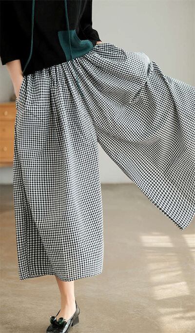 ワイドパンツ レディース チェック柄 綿麻 リネン 秋 春 夏 スカンツ ロング丈 体型カバー おしゃれ ゆったり カジュアル ナチュラル 着痩せ ボトムス 春物 春 夏 秋 ゆる 大きいサイズ 薄手