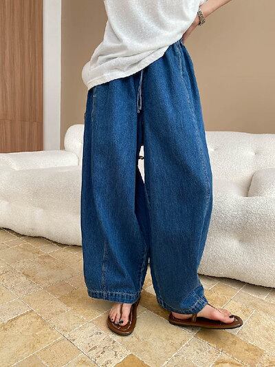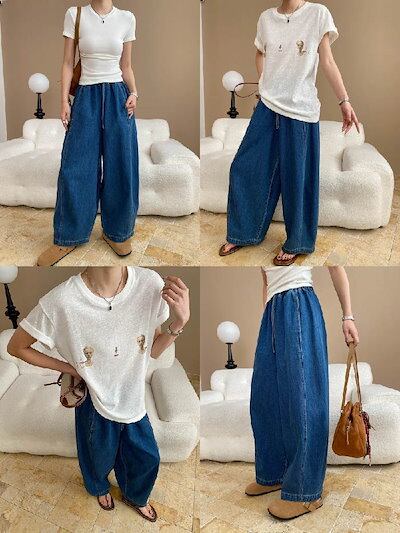 サルエルパンツ デニム レディース 春 秋 ワイドパンツ ロング丈 デニム パンツ 華奢見え 体型カバー おしゃれ ゆったり カジュアル ナチュラルカジュアル 着痩せ ボトムス ゆる 大きいサイズ