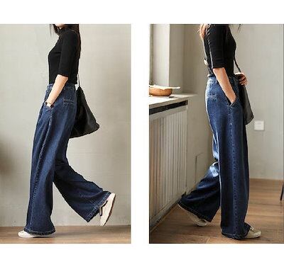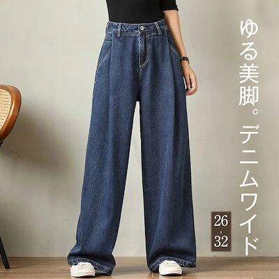 ワイドパンツ デニム レディース 春 秋 ロング丈 デニム パンツ 華奢見え 体型カバー おしゃれ ゆったり カジュアル ナチュラルカジュアル 着痩せ ボトムス ゆる 大きいサイズ トレンド 着回し