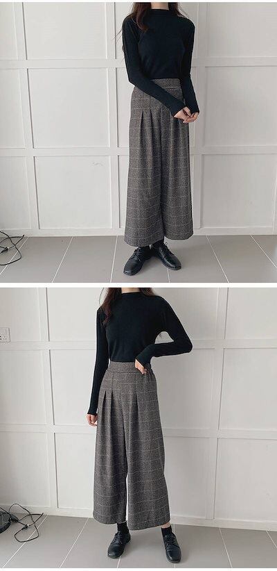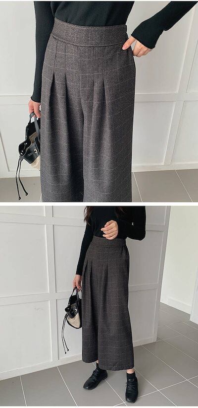 ワイドパンツ レディース 春 秋 スラックス ロングパンツ ロング レディース9分丈 ガウチョパンツ パンツ 無地 チェック柄 キレイめ ハイウエスト 美脚 黒パンツ 9分パンツ コーデ シンプル 着