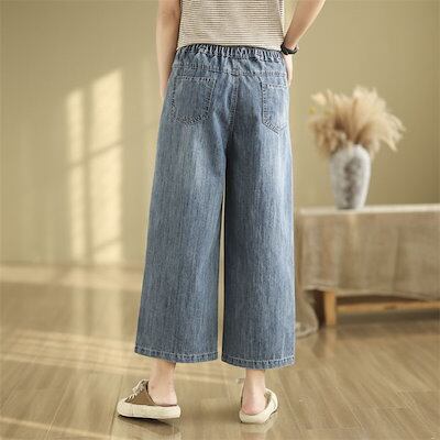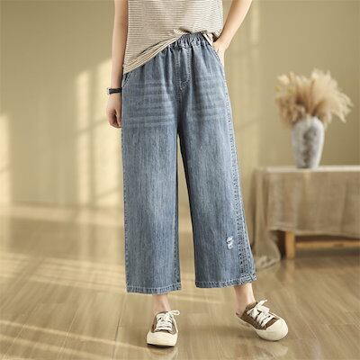 デニムパンツ 春夏 ワイドパンツ ロング丈 レディース パンツ ボトムス デニム 9分丈 体型カバー ゆったり ガウチョパンツ ワイド ガウチョ ロング ハイウエスト ウエストゴム 美脚 春 ジーンズ