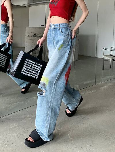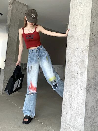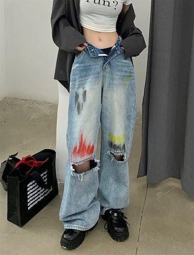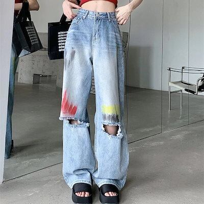 新作 ワイドパンツ ダメージジーンズ ワイドパンツ gパン ストレート ハイウエスト ゆったり ロングパンツ ボトムス カジュアル ヒップホップ ダンス ギャル 長ズボン レディース 春夏秋 ファッシ