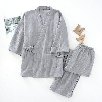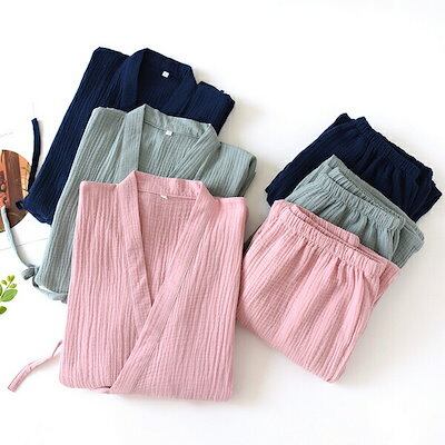 パジャマ 春夏 レディース パジャマ メンズ 七分袖 長ズボン 甚平風パジャマ お揃い可 作務衣 レディース 甚平 メンズ 前開き 浴衣