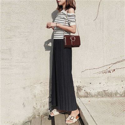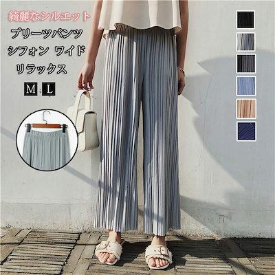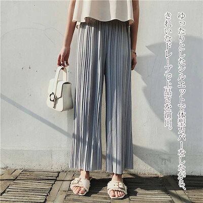 プリーツパンツ ワイド レディース シフォン 夏 春 ワイドパンツ 9分丈 プリーツ ウエストゴム ハイウエスト フレアパンツ パンツ タック ガウチョパンツ ゆったり オフィス ボトムス 無地 シフ