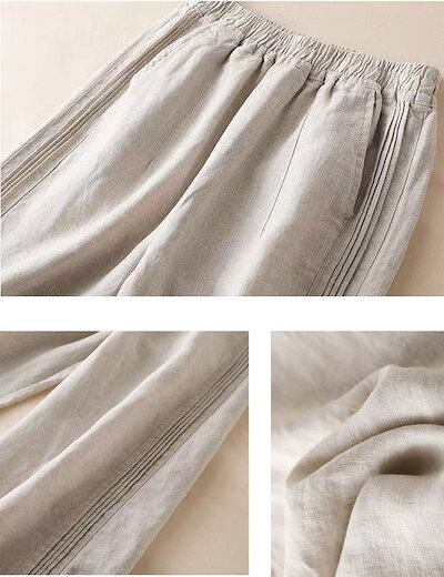 ワイドパンツ レディース 綿 麻 リネンパンツ 春 夏 タック ウエストゴム ハイウエスト ロング パンツ ストレート ポケット付き コットン ゆったり オフィス ボトムス ワイド 無地 ホワイト ブ