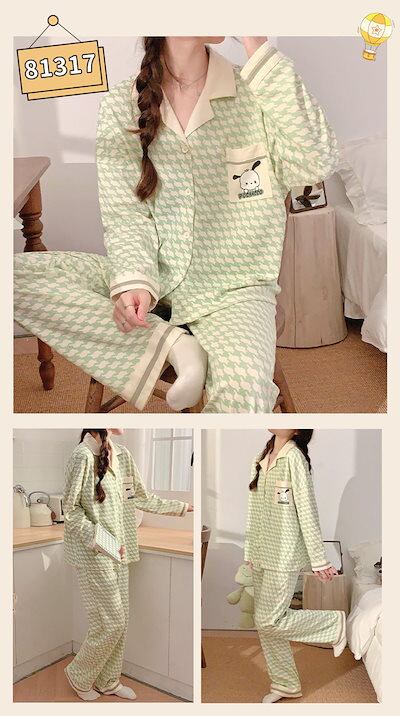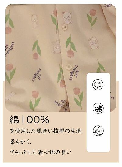 ルームウエア パジャマ レディース 花柄 犬 綿 コットン 長袖 長ズボン 春 夏 秋 上下セット 部屋着 寝間着 通気性 前開き 冷え性対策 柔らかい 暖かい 肌触りがいい
