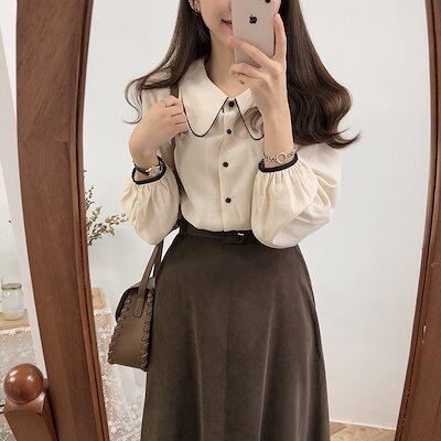 【本日限定】新作ブラウス レディース 長袖 切り替えブラウス トップス 秋 ゆるブラウス デザイ感 人気 着痩せ Tシャツ 柔らか カジュアル 可愛い