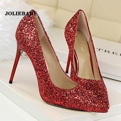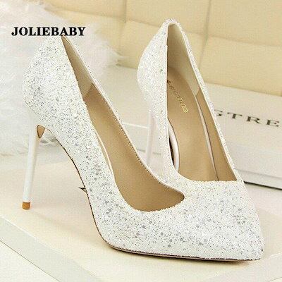 パンプス 痛くない 結婚式 レディース ポインテッドトゥ キラキラ ウェディングシューズ ハイヒール ピンビール ブライダル パーティー キャバ嬢 発表会 演奏会