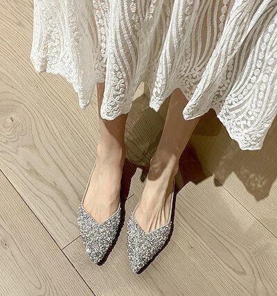 パンプス ぺたんこ レディース 走れる 痛くない パンプス シューズ フラット Vカット バレエシューズ カジュアル フラット ローヒール ポインテッドトゥ 女っぽ 歩きやすい 疲れない キラキラ b