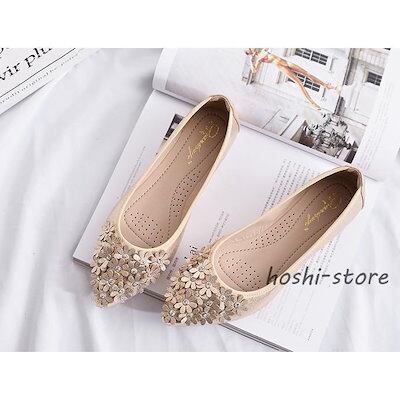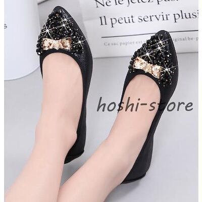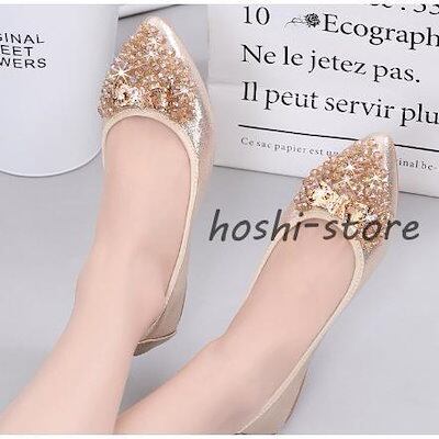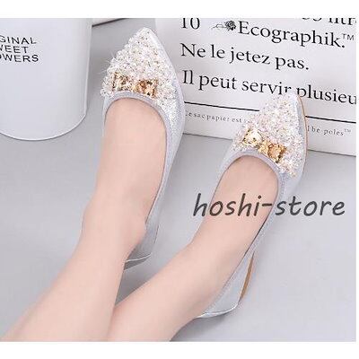 パンプス 結婚式 靴 ブライダルシューズ レディース ローヒール 痛くない フラットパンプス ポインテッドトゥ べたんこ 疲れにくい キラキラ