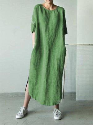 ワンピース レディース 半袖 ロング丈 きれいめ カジュアル 無地 ゆったり 着痩せ 気質 通勤 シンプル ワンピース 大きめサイズ