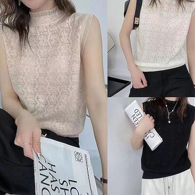 【夏の定番】透け感レース トップス 涼しいア ノースリーブ ブラウス 女性用 インナー 透け防止 通気性 夏用クールタンクトップ オフィスカジュアル セットアップ可