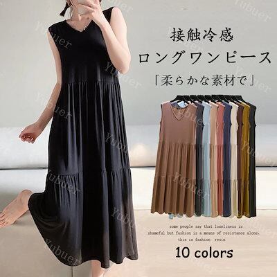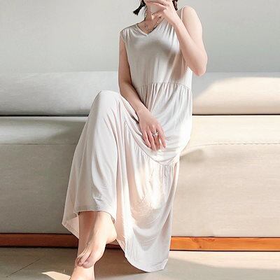 【2枚購入で 2oo円OFF!】アイスシルク 半袖 モダール ロングワンピース レディース 夏 ホームウェア 薄手 接触冷感 韓国 ワンピース リゾート