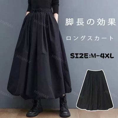 【2枚購入で 3oo円OFF!】スカート ロング レディース 黒 大きいサイズ フレアスカート 春 秋 ロングスカートシンプル ボトムス きれいめ カジュアル 大人 可愛い