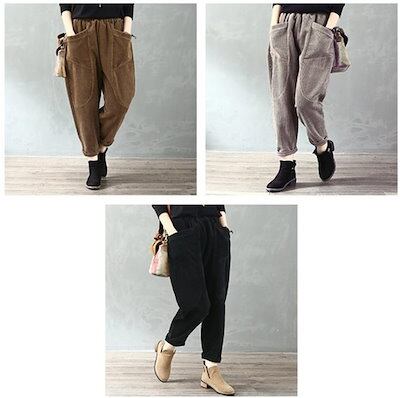 パンツ コーデュロイ サルエルパンツ ボトムス テーパードパンツ ズボン レディース 大きいサイズ 無地 秋冬