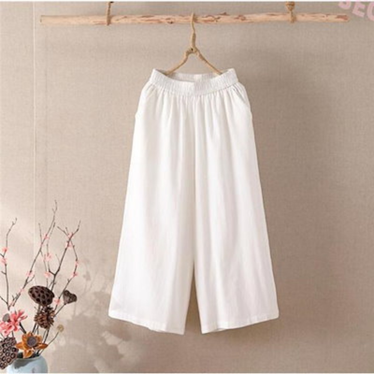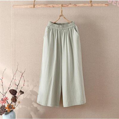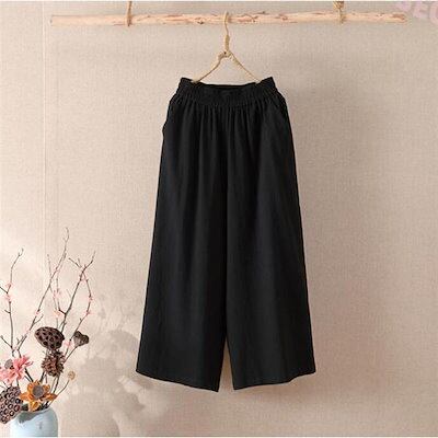 ガウチョパンツ レディース ワイドパンツ リネン風 ウエストゴム 綿 コットン ゆったり 洗える 体型カバー ロング丈 ナチュラル ボ