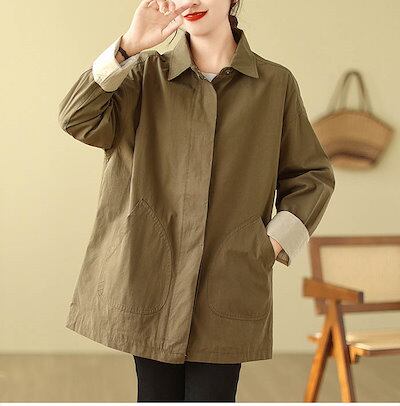 シャツ レディース 秋 春 シャツジャケット 羽織り ブラウン ジャケット 長袖 大きいサイズ ジャケット シャツ ゆったり シンプル カジュアル 着回し ビッグシルエット 体型カバー 幅広カフス