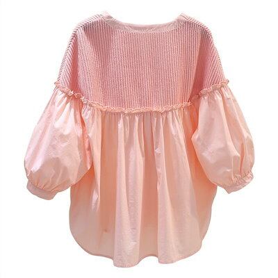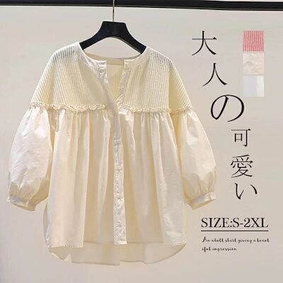 シャツ ホワイトシャツ レディース バルーンスリーブ シャツブラウス 夏 七分袖シャツ ニット 7分袖 切り替え バルーン袖 無地 ギャザー フレア 体型カバー ゆったり 春夏 ブラウス カジュアル