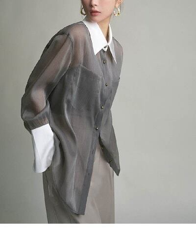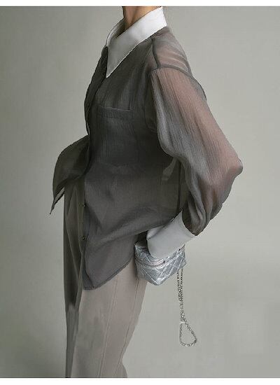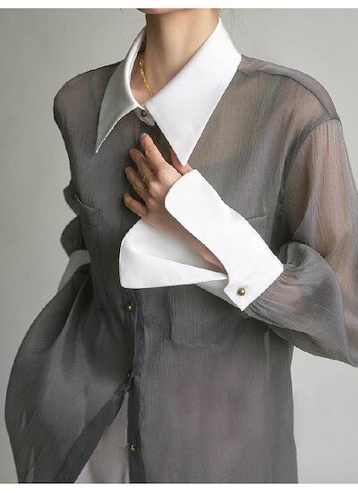 シャツ シアーシャツ レディース トップス 透け感 シャツ インナーキャミ付き シースルー オーバーサイズ ゆったりサイズ ビッグシルエット 幅広カフス シンプル おしゃれ 大人カジュアル こなれ感