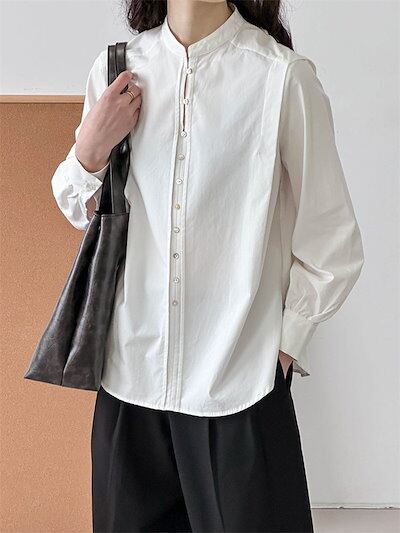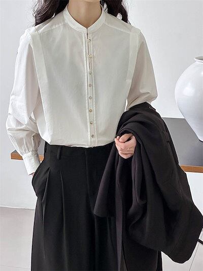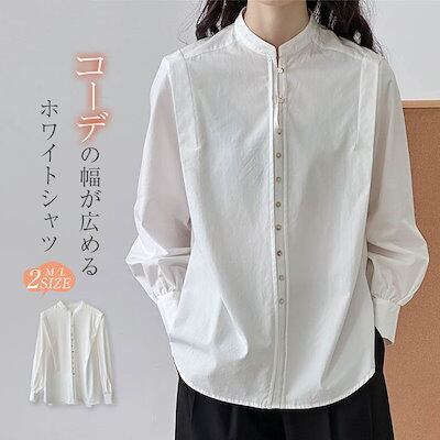 シャツ レディース ホワイト シャツ 白 長袖 シャツ ブラウス トップス ベーシック スーツインナー シンプル 春 秋 冬 前開き 大きいサイズ ゆったり カジュアル オフィス ナチュラル 高級感