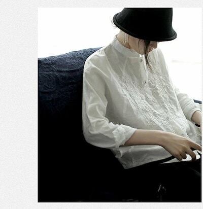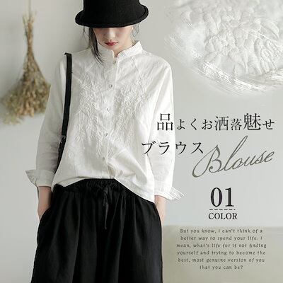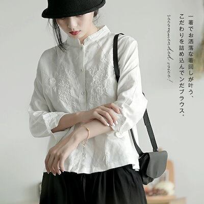 シャツ ブラウス 綿 麻 レディース 白シャツ 刺繍 シャツ 花柄刺繍シャツ 花柄刺繍ブラウス レディース 長袖 トップス ゆったり 体型カバー 新作 前開き 春秋 ショート丈 大人 花柄 体型カバー