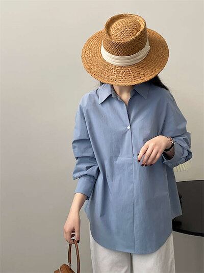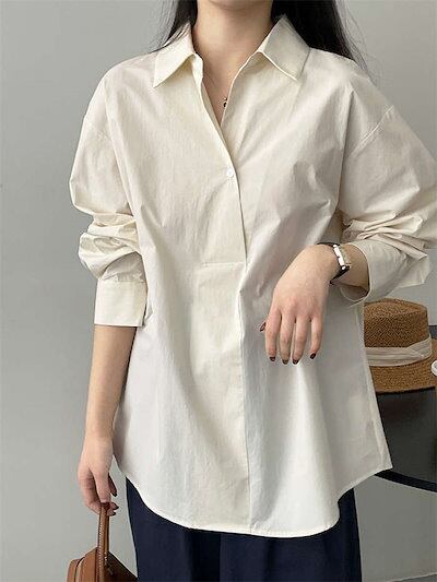 ブラウス トップス 綿シャツ レディース 夏 春 秋 冬 プルオーバー シャツブラウス 無地 コットン 折り襟 長袖 ナチュラル ゆったり かわいい チュニック ゆったり シンプル 着痩せ 通勤 仕事