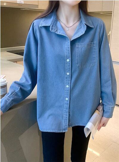 デニムシャツ ブラウス レディース Gシャツ トップス 長袖 春 秋 ロングシーズンおしゃれ トップス デニムシャツ 前開き ポケット付き アウター チュニック きれいめ ゆったり カジュアル 大きい