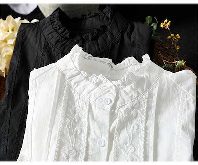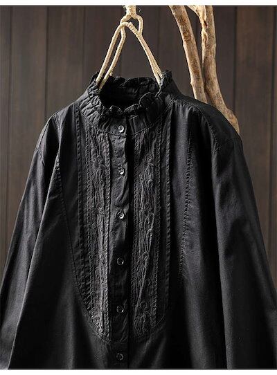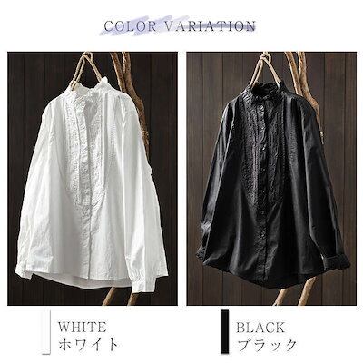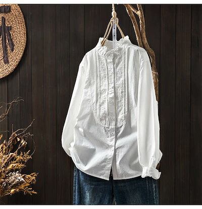 シャツ レディース 長袖 立ち襟 お洒落 綿 前開き オフィス ブラウス 春 トップス きれいめ 大人 カジュアル シンプル 体型カバー 大きいサイズ ゆったり 20代 30代 40代 50代 60代