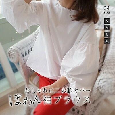 ブラウス ぽわん袖 レディース チュニック パフスリーブ バルーンスリーブ ゆったり トップス シャツ オフィスカジュアル 無地 きれいめ 長袖 ボリューム袖 ドルマン マタニティ 大きいサイズ 体型