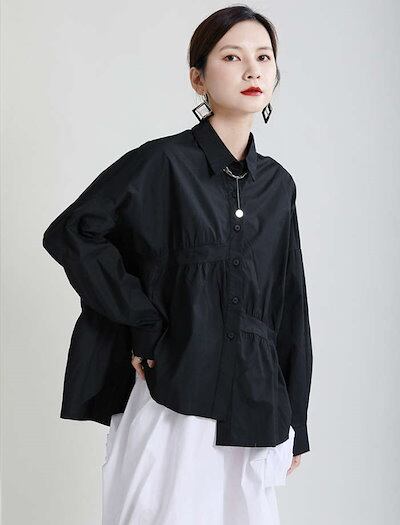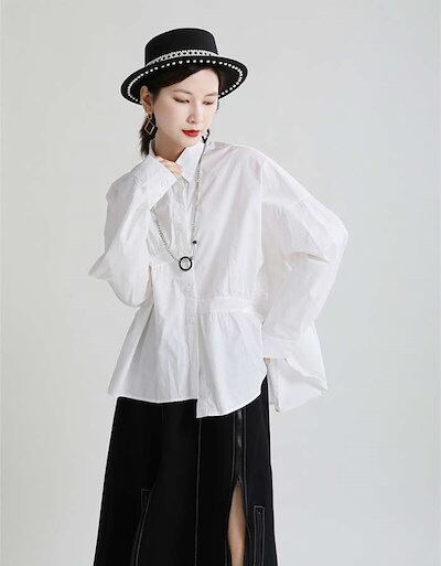 シャツ トップス レディース 長袖 ボリューム袖 春 秋 ゆったり 大きいサイズ デザイン きれいめ おしゃれ 立ち襟 ブラウス 無地 体型カバー 通勤 オフィス カジュアル