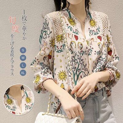 ブラウス レディース 長袖 ブラウス 春新作 オフィスブラウス プリント Vネック オシャレ ブラウス レショントップス 韓国風 大人通勤OL ゆったりシャツ 40代 50代 送料無料