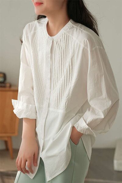 ブラウス レディース スタンドカラー シャツブラウス レディース 秋 長袖 トップス ゆったり ノーカラー きれいめ 前開き ボタン チュニック ブラウス 無地 体型カバー 通勤 大人可愛い オフィス