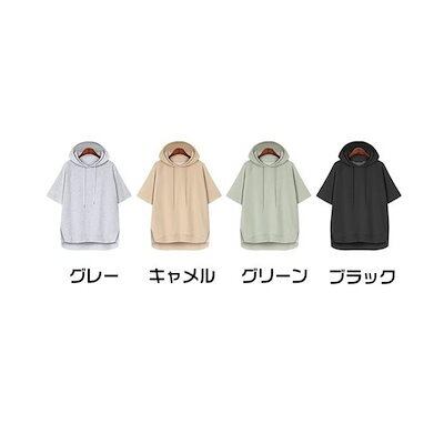 半袖パーカー カットソー トップス 五分袖 夏 高品質 レディース Tシャツ フード付き ゆったり tシャツ パーカー プルオーバー